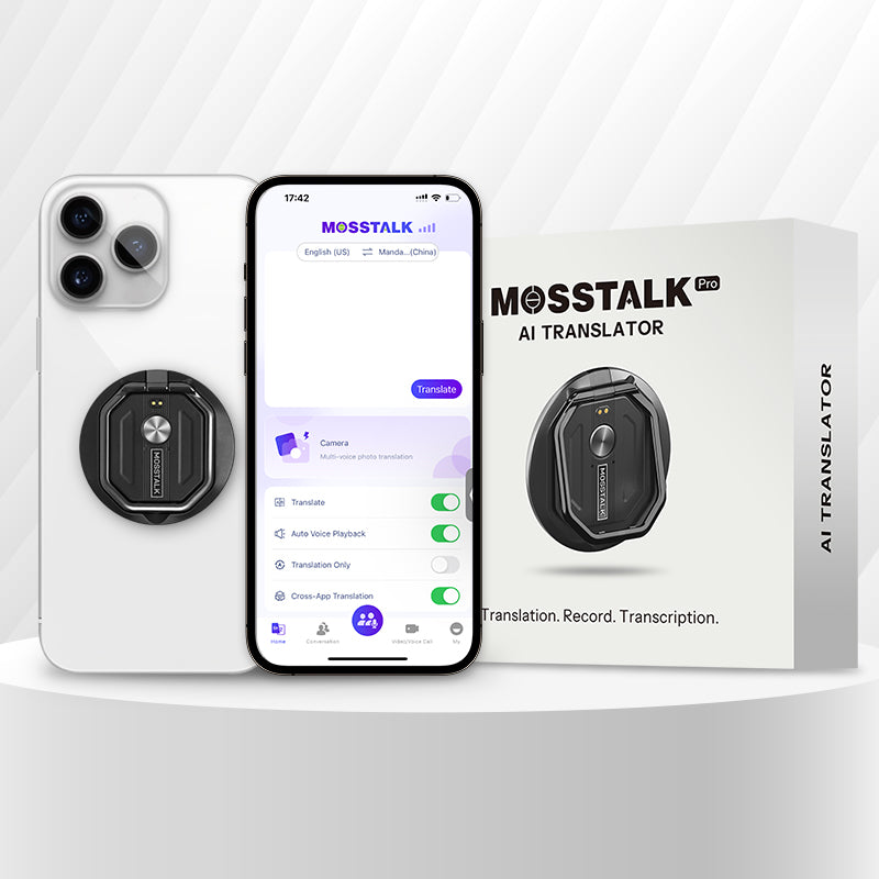 MOSSTALK Pro AI Translator dominates the translation field, relying on its leading technological strength. It is equipped with self - developed machine translation technology. This technology has undergone repeated training and refined optimization with massive amounts of data, enabling it to accurately disassemble language structures and deeply understand the complex meanings behind words and sentences.
